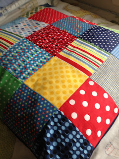 I really love all the colours I used. I started out with just shades of blue and red, but it didn't look right. A bit of yellow and green has made a lovely bright addition to his room. Just in time for a bit of lounging around on during the Easter holidays.